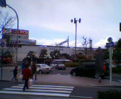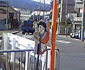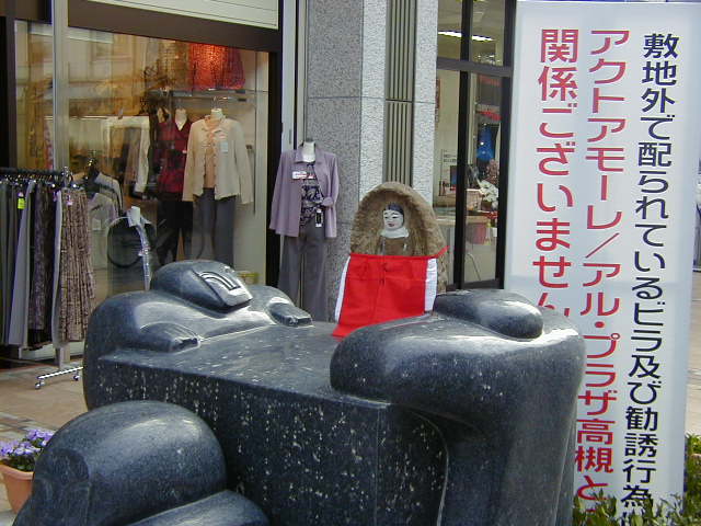 オブジェと一体となってアルプラザの玄関(芥川商店街側)前に帰ってきました。「お