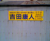 今日(日)は朝から吉田康人の政治活動用看板の掛け替え作業(今日は4ヵ所)をしました。市内で12ヵ所まで看板設置が認められています。