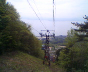 山頂駅へ向かってぐんぐん上ります。琵琶湖が向こうに見えます。