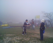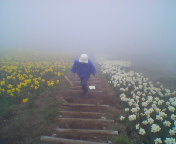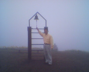 山頂付近は霧が深く視界不良です。薄着では寒くて耐えられませんよ。