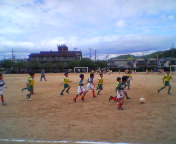 試合終了。真上は5対2、8対0と連勝。我が子も1点決めました。良かった、良かった。