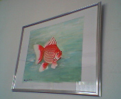 趣味で絵画をしている父の絵を真上事務所に飾りました。金魚と・・