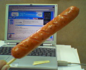 「ジャイアント・フランク」(ローソン)というだけあってさすがにデカイ。ものさしで測ってみました。18.5cmもありました。味もおおあじでした(笑)。