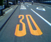 交差点の手前に「こども注意」と「30(km)」の標識を描いていただきました。