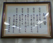 今日は記念朝起き会ということもあり朝4時起きで実践倫理宏正会の朝起き会へ参加しました。写真は3月以前のログでご紹介した「朝の誓」の書です。