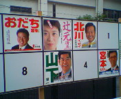 今日、参議院議員選挙が公示されました。選挙期間は17日間、投票日は7月11日(日)です。主要候補者のポスターは公営掲示板へ既に貼付されています。