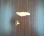 妻にも見せようと思い歯をいただいてきました。普通サイズの押しピンと比較してみました。特に前歯はこんなに深く埋まっているのです。グッタリ・・。今晩は腫れるかもしれません。お見舞いのお電話は明日以降でお願いします(笑)。