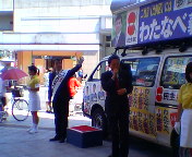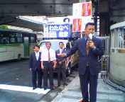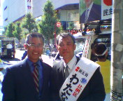 民主党・衆議院議員のいちむら浩一郎さん(兵庫6区:宝塚市、伊丹市、川西市)。参議院選挙の応援で長岡京まで来たということで高槻へお立ち寄り下さいました。いちむらさんとは大学の同級生で「いっちゃん」と呼ばせていただいております。「7月11日(日)は場合によっては国際情勢へも影響を与える非常に重要な選挙」ということで2人の意見が一致しました。あと一息、がんばって下さいね。