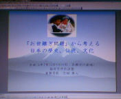 3月以前のログでご紹介した時は写真の写りが大変悪くて失礼を致しました。慶応大学助教授の中村先生です。大阪ご出張ということで夕食をご一緒させていただきました。「志の純度をさらに高める」という吉田康人の新たな決意をじっと聞いて下さり最後に「安心した」と言っていただきました。過去20年間、心の支えとなって下さっています。