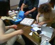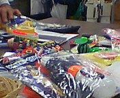 高槻まつり(8月7日(土)・8日(日))の屋台でフリーマーケットもやります。今日はその値札つけです。槻友会高槻・島本支部の宮地支部長の事務所で。
