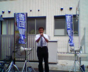 今日の街頭活動は、有森裕子さんじゃないけど、「自分で自分をほめてやりたい」ほどの炎天下での演説となりました。ボランティア・スタッフの段取りが付かずたったひとりでの演説となりましたが、石垣一夫先生が昨日お亡くなりになられたことがあり、どうしても街頭に立ちたかったんです。