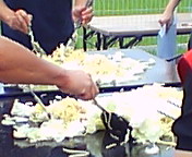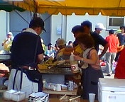 焼き始めました。このペースで何食焼けるか?。スピードで「勝負」が決まります。