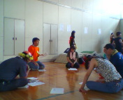 高槻まつりへ向けて焼そば「屋台」の試準備・試焼き・試食会です。まずは、スタッフ・ミーティング。