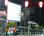 桃園小学校グラウンド。ステージのプログラムも始まり人も集まってきました。
