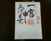 吉田康人にとって良き指導者でもあり、友人でもあり、そして、同志でもある杉並区長の山田宏さん。「クーラーをつける不見識とクーラーをつけない見識」の話は山田区長から何年も前に直接うかがったことがあるのですが、山田さんの著書「一言申し上げます。 −杉並改革」で文章としても読ませていただきました。政治塾「知己塾」塾生の増田ゆういちさんからこの本をお借りしています。昨日1冊読み終えたので今日から読みますからね。