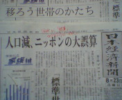 日本経済新聞で「未知なる家族」という特集が今週から始まりました。タイトルどおり「家族と日本の行方」に関するシリーズものです。第1回目の記事の見出しは「人口減、日本の大誤算」。要するに、政府の審議会が「人口再生産力が下がりすぎ」と1969年の時点で既に警告を発していたにもかかわらず、誰もが人口減少の予測に目を向けず、以来35年分のツケが今あちこちにのしかかっているという内容の記事になっています。