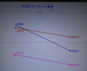 「おおらか通信 平成16年8月7日(土)号」の内容を明日、吉田康人ホームページ本体へアップする予定です。ただ、グラフの部分は技術的にもアップが難しく(^_^;)省略します。そこで、イメージだけでもつかんでいただこうとこのログでご紹介します。ブルーが高槻市、オレンジが吹田市、ピンクが茨木市。それぞれ2030年までの人口推移予測です。「おおらか通信」原本ではこれに枚方市、豊中市、箕面市、池田市、そして、摂津市を加えて合計8市の人口推計を比較しています。
