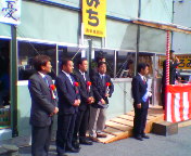 高石市長・阪口しんろくさんが公務のご都合で出陣式開式に先立ちご挨拶。阪口さんも決起の会の同志です。