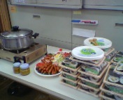 事務所にたまたまいた吉田康人もみなさんがお持ち寄り下さったお昼ご飯のおこぼれにあずかりました。