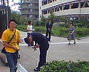 再び、神戸市立美術館前。快晴だが潮風が吹いて、涼しい。高槻も今朝は涼しかった。吉田康人も背広を久々に着てきました。