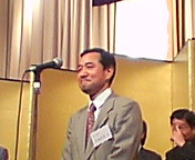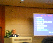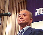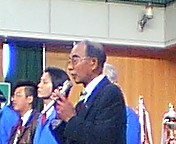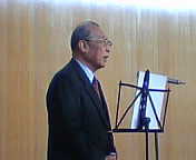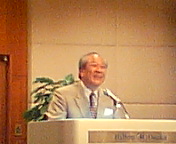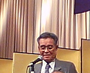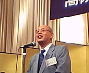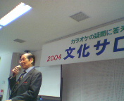 高槻市カラオケ文化協会の「2004文化サロン」へお招きいただきました。同協会会長は入江輝彦さん(写真)。吉田康人の中学、高校の大先輩で高槻青年会議所(JC)初代理事長です。冒頭のご挨拶はもちろんですが、「メディア社会におけるカラオケ文化進化論」というお話もして下さいました。