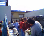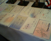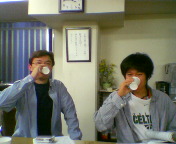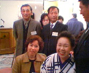 祝杯に先立ちプレゼントや自己紹介カードの交換、そして、交換した人どうしの記念撮影を行いました。吉田康人の母も韓国側の女性と・・