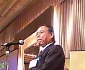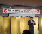 21平和フォーラム麗水市(支部)会長・黄淳玉さんからのご挨拶。黄さんは韓国青年会議所でもご活躍されたかたです。「来年は麗水市へ是非いらして下さい」との呼び掛けがありました。
