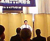 夕刻からはホテル・ヒルトン大阪で「槻友会」(高槻中・高等学校同窓会)第18回総会がありました。同ホテル5階「桜の間」が超満員になるほど大勢の先輩がたがお集まりになられました。第1部は総会審議。まず、母校の菅沼校長先生からご祝辞を賜りました。