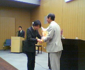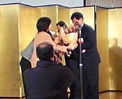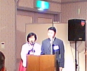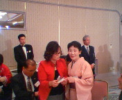 初めに、花束の贈呈です。高槻JC理事長・堀加津子さん、吉田早苗(吉田康人の妻です(^_^;))から21平和フォーラム理事長・黄善柞さん、同麗水市(支部)会長・黄淳玉さんへ。