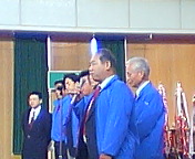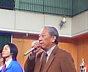 母校教務部長の岩井先生からご祝辞。岩井先生は、吉田康人が母校アメリカン・フットボール部時代の顧問でした。今は、我が息子に「道徳」をお教え下さっています。