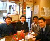 毎月第4金曜日の知己塾定例勉強会を終え、芥川商店街の「蔵よし」で食事。(右から)摂津市議会議員の嶋野浩一朗さん、島本町議会議員の川口ひろしさん、税理士の小阪さん、そして、まっつん。私達の直近の戦いとしては川口さんの選挙が来年4月にあります。
