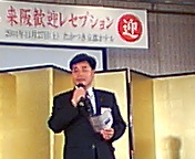 「大韓民国麗水市・21平和フォーラム来阪歓迎記念レセプション」実行委員長の大持進一さんからご挨拶です。温かい笑顔のご挨拶でした。