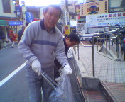 宮地支部長(写真)を先頭に今日は阪急高槻市駅から城北通り商店街、現代劇場前、大手町、そして、阪急高槻市駅前飲食店街のゴミ拾いをしました。