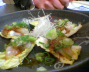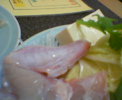 写真は、ふぐの湯引きの後に出される「てっさ」と・・