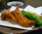 ふぐの唐揚げ。揚げる前に浸すタレがよくしみてます。