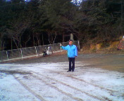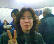 今日は非常に寒い一日でした。みぞれも降ったし。スタッフはみんな震えてた。震えながら缶コーヒーを飲んでた丸山さんとツーショット。
