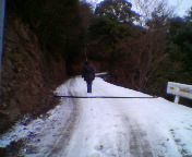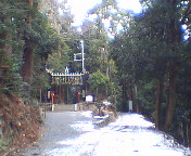先日の雪がまだ残っている急な参道を妻と上ります。