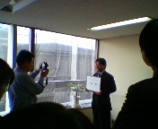 新聞記事用写真の撮影。各新聞社の記者が各々ご自分でお撮りになります。