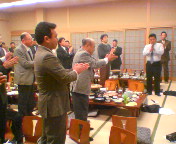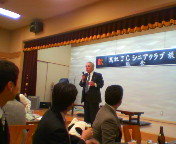 ご酩酊、上機嫌の高槻市立第二中学校元校長の大山先生。現在は民生・児童委員としてご活躍です。大山先生も力仕事を一生懸命して下さってたなぁ〜。実に気さくな先生です。ありがとうございました。