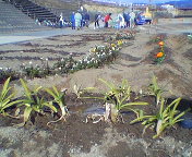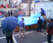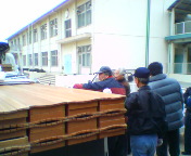 ステージ周りの撤収が終わりお借りした椅子類を芥川小学校へ返却にいきます。写真はトラックの荷台から。
