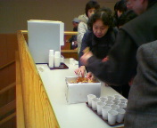 後片付けと掃除がほぼ終わり、古川先輩差し入れの焼肉で打ち上げです。
