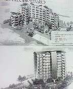 (上は平成15年時点のイメージ図(7階建て)、下は平成17年時点のイメージ図(10階建て)。変更理由の説明もないそうです)