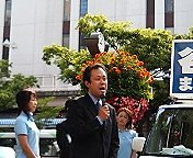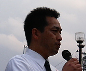 夕刻の駅頭演説会。和田候補が大学生時代に創った「鵬志会」という政治サークルの後輩、稲垣昭義三重県議会議員が応援演説。