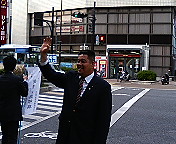 応援演説の最中、駅の乗降客のみなさんへ交差点でご挨拶する和田候補。