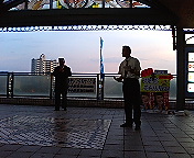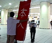 一夜明けて今朝はJR「田端」駅前から活動開始。ただ今、ミーティング中。