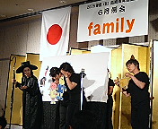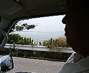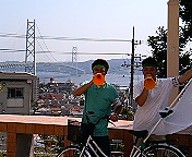 明石大橋をバックに記念撮影。