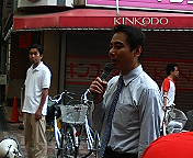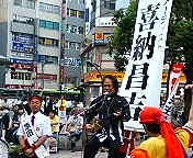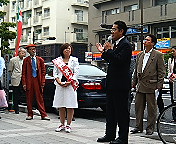 夕刻のJR「赤羽」駅前ではミュージシャンで民主党・参議院議員の喜納昌吉さんが原田候補のために路上ミニ・コンサートを開いて下さいました。