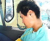 移動中に堪らずウトウトの学生ボランティア・スタッフ。こんなことを毎日続けているのだから相当お疲れでしょう。暫らく充電して下さいね。