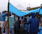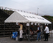 このところ断続的に降り続いている雨を不安視しながらも受付テントは設営完了です。