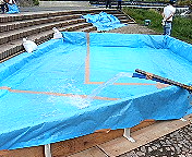 シートを張って、さあ、給水です。川から水をポンプアップします。